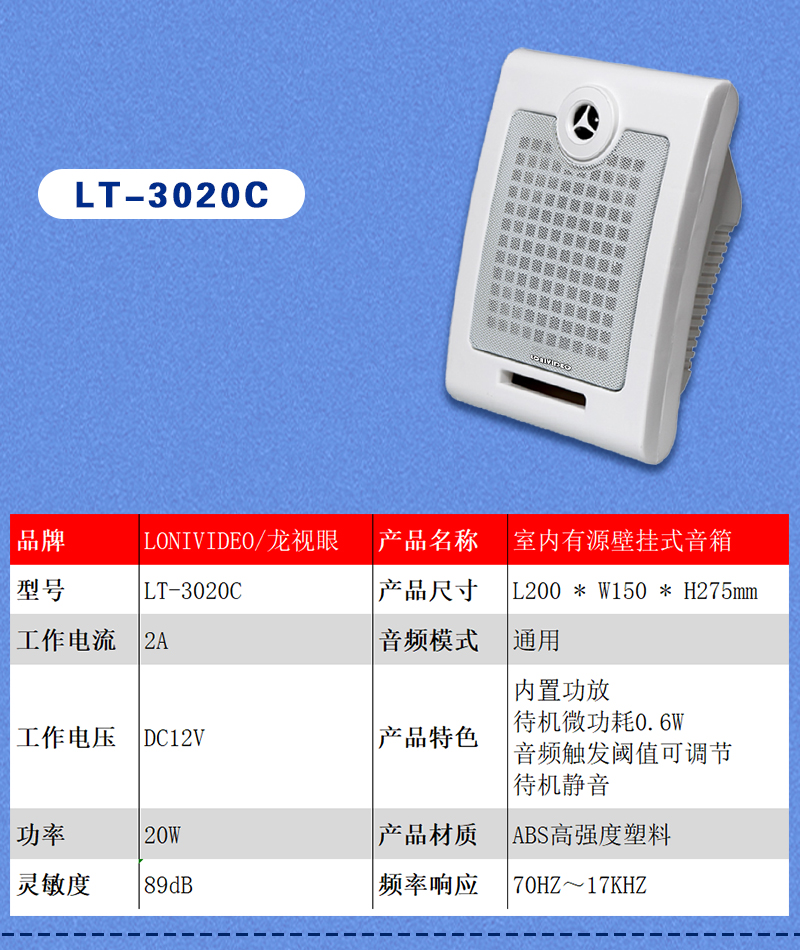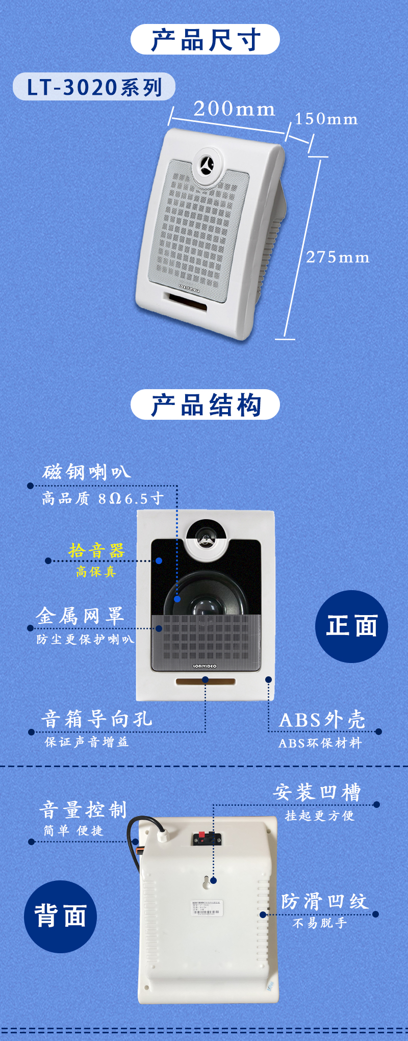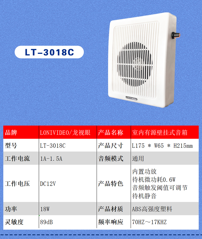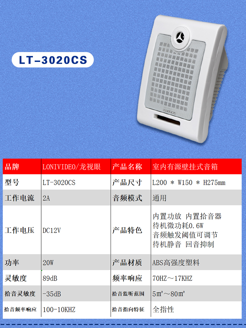 監(jiān)控攝像頭外接喇叭內置功放拾音器咪頭低功耗高保真待機靜音回音抑制音頻觸發(fā)閾值可調有源雙向對講掛壁音箱